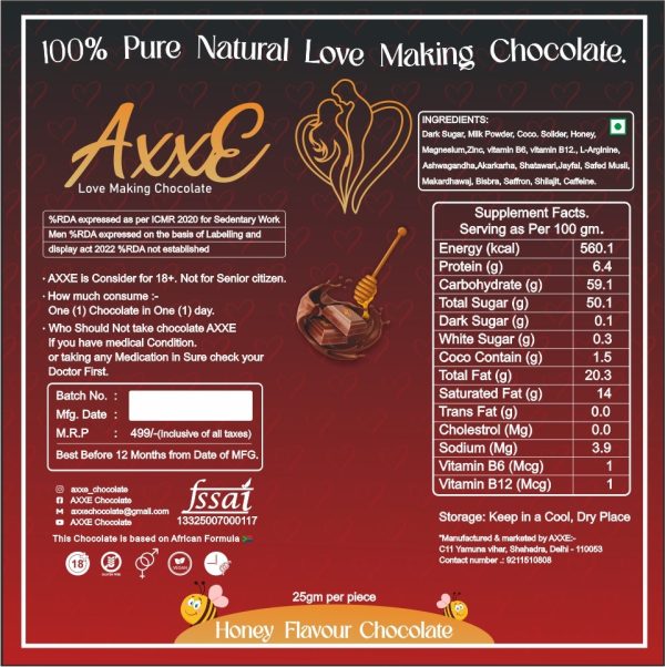 AXXE Chocolate (Mood Enhancing Chocolate For All Gender) 1 Slab